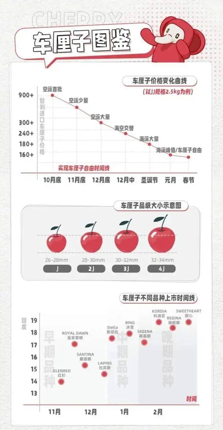 近年来,随着海运技术的不断进步,尤其是冷链保鲜技术在海运中的广泛应用,海运成为了车厘子运输的重要选择。海运的运力远远超过空运,一次能够运输大量的车厘子。而且,海运成本相对较低,以5公斤装的车厘子为例,走海运的成本大约只需20元/ 箱 。这使得车厘子的到港成本大幅下降,为价格下调提供了空间。